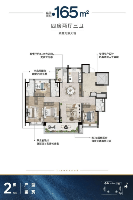 振业天成推出了多种户型选择,面积范围从104㎡到168㎡不等,涵盖四至五房的设计。所有户型均为两梯两户或两梯三户设计,营造更强的隐私感和舒适度。更低的梯户比不仅提高了居住的私密性,也减少了等待电梯的时间。特别是大面积户型,适合追求高品质生活的家庭,提供了宽敞舒适的居住空间。