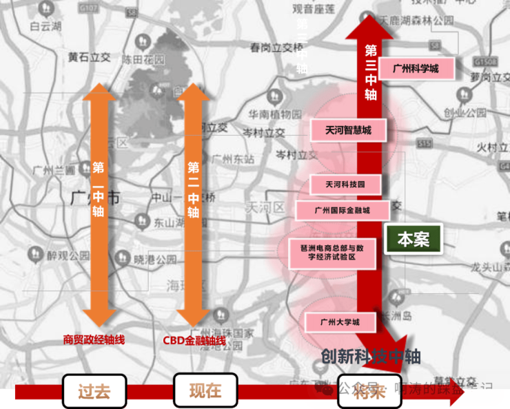 ✔广州发展第三中轴:黄埔位于广州第三中轴“创新科技中轴”之上,将引领广州下一个黄金十年,而项目正处于第三中轴核心,势不可挡