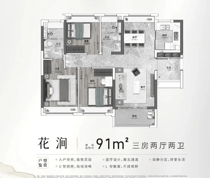 ② 首置刚需家庭——91㎡四房,功能齐全;