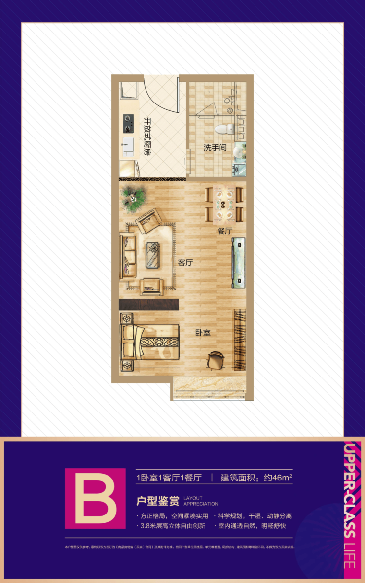 对于年轻首置/投资者: 约46㎡户型是低门槛占据核心资产、分享城市发展红利的绝佳选择,租金回报和增值潜力可期。