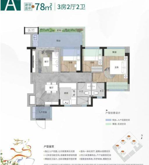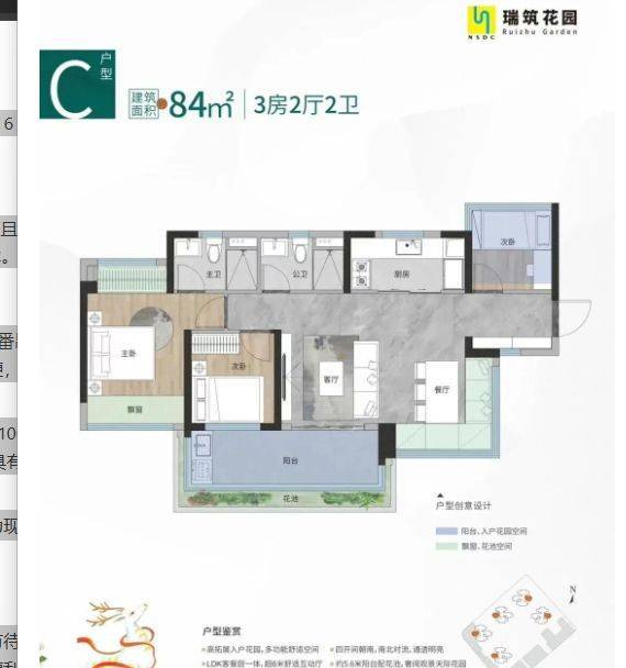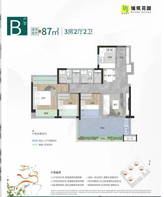 84㎡户型为 3 房 2 厅 2 卫,拥有超 11 米通透采光面,独立单边位,四开间朝南,实现南北对流,超 6 米的舒适互动厅,为居住者提供宽敞明亮的居住空间。售楼处电话:4009909752。