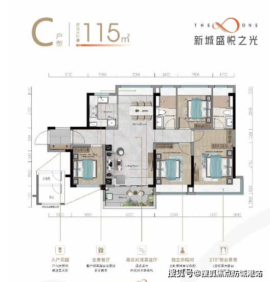 产品面积:85-95㎡三房两厅两卫,115㎡四房两厅两卫,共1188套