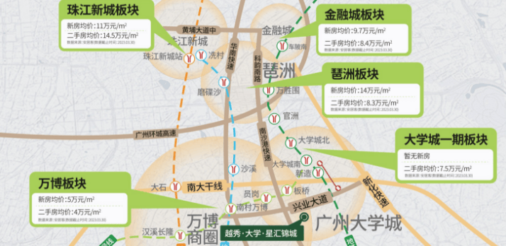 据悉,越秀地产自2009年开始布局番禺大学城,先后开发了越秀·星汇文华、越秀·星汇文瀚、越秀·星汇文宇等一系列知名项目,填补了广州大学城的人居空白,打造了独特的人文居住氛围。2021年,广州明确提出了大学城一江两岸占地约73平方公里的战略定位,广州大学城2.0版本“上线”,以打造“科创极点”为目标,联动大学城一期,打造年产值破千亿,集“产、学、研、商、居”于一体的产业大城。
