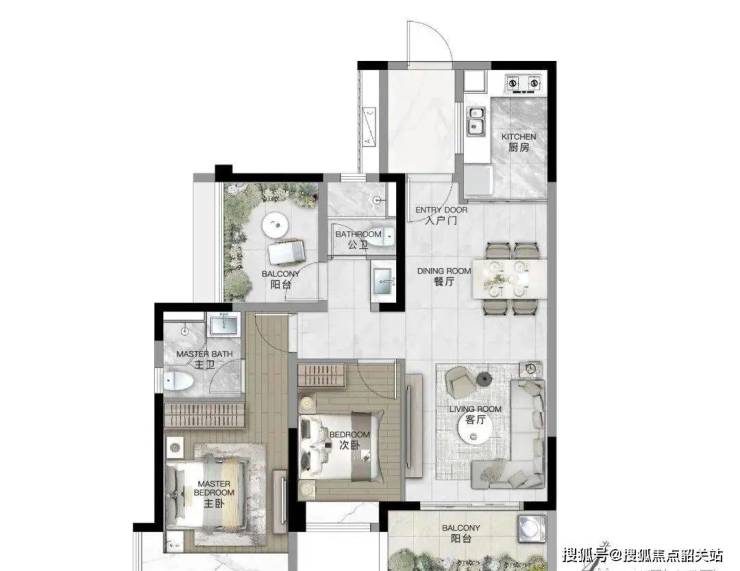 98㎡ 2+1房:三开间朝南,9.8米采光面,LDK一体化设计,主卧带270°转角飘窗,适合三口之家;