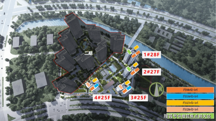 项目主力户型为98-143㎡三至四房,全系南向设计、高赠送率,实用率突破85%: