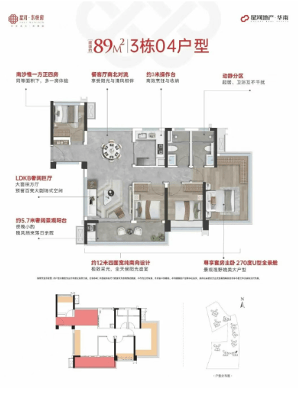 产品力方面,星河东悦府主打建面约89/106/122㎡全四房、138㎡双主套4+1房,所有户型均采用南北对流、四开间南向设计,实用性与舒适性远超同面积段其他楼盘,其中至高128%的使用率,更是成为南沙超新规产品的标杆。所谓超新规,即突破传统户型的空间限制,通过全赠送飘窗、设备平台等设计,提升空间利用率,让小户型也能拥有大空间,满足家庭不同阶段的居住需求。