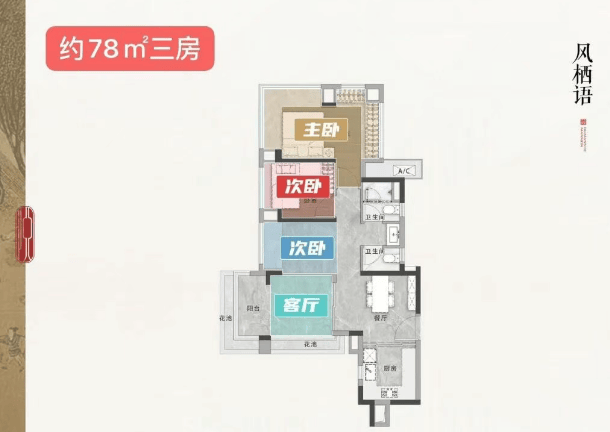 约78㎡三房1.5卫:紧凑高效,适合首次置业或小家庭过渡;