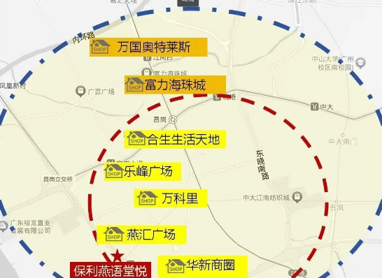 保利·燕语堂悦位于海珠区工业大道中,地处广佛线与11号线交汇的燕岗地铁站旁,是海珠后航道服务型制造创新带与文商旅融合圈的交汇点。这一区域既有老城区数十年沉淀的生活氛围,又承载着海珠未来连片开发的高端居住功能。