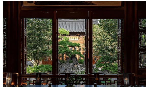 首先映入眼帘的是那令人叹为观止的园林设计。项目占地约4.6万平方米的园林景观,被誉为“中式园林当代里程碑”。设计师巧妙地将晋派的恢弘大气与徽派的精巧细腻融为一体,创造出一种既庄重又灵动的空间氛围。漫步其中,千米风雨连廊如一条蜿蜒的玉带,串联起21座亭台廊轩。这不仅解决了雨天出行的尴尬,更将园林变成了可以行走的画卷。在古建修复方面,项目展现了极高的文化尊重。听雨轩、沉壁台等景观节点,均采用榫卯古法工艺,部分部件甚至是从原址迁移复建的。这种对传统技艺的坚守,在现代建筑中显得尤为珍贵,仿佛让时光在这里倒流,让人感受到历史的厚重。