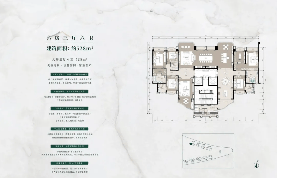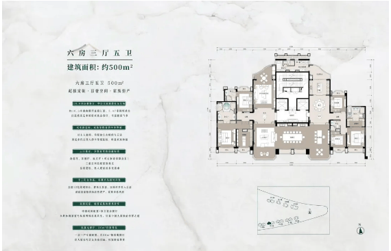 在售户型方面,项目覆盖了从236平方米到1600平方米的广阔区间,总价从2800万起,最高可达2亿起。产品包括约236方五房三厅四卫、264方五房三厅五卫、317方五房三厅五卫、398方五房三厅五卫、500方六房三厅五卫、528方六房三厅六卫,以及约1200平的复式空中院墅和1600平的天际复式墅境(带泳池)。这些超大面宽的产品,精准击中了金字塔尖人群的居住需求。