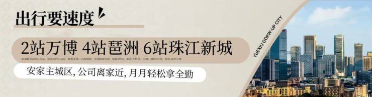 交通条件是衡量区域成熟度的重要指标之一。越秀·大学·星汇锦城所在片区,已形成以城市主干道为骨架的立体交通网络,对内连接万博核心区,对外可快速衔接珠江新城、琶洲等重要节点。