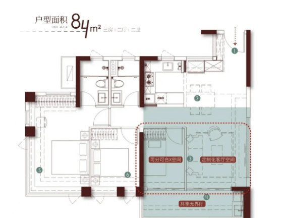 最新加推的2号楼提供了从约84平方米到约111平方米不等的新规户型,户户朝南,采光通风良好。尤其是建面约107平方米的四居室户型,不仅拥有LDKB+X灵动大横厅,还能实现南北对流,部分高层单位甚至可欣赏到珠江和小蛮腰的壮丽景色。