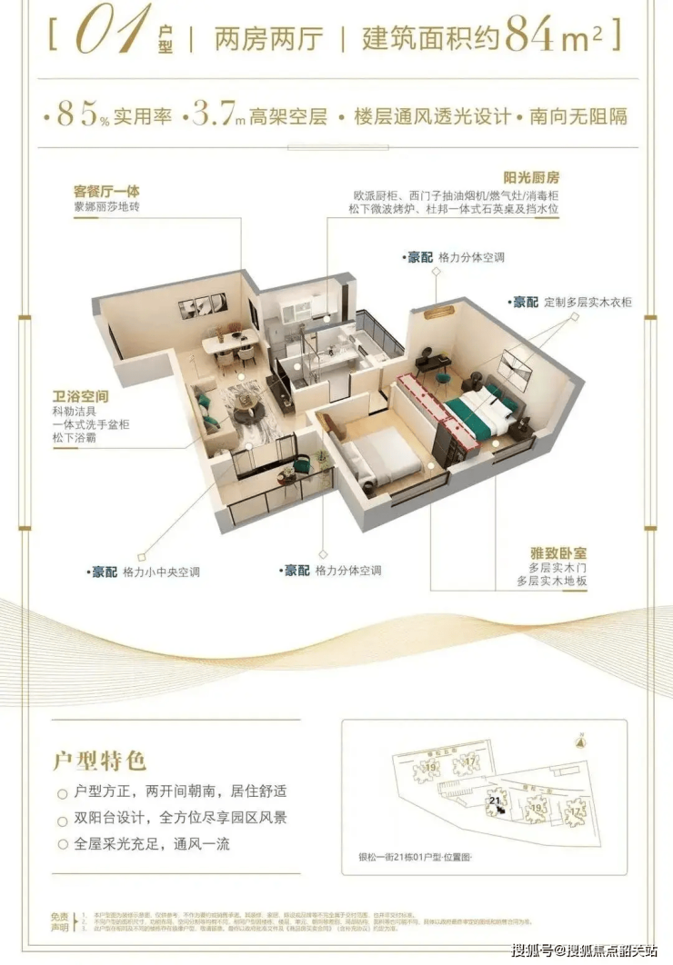 得房率超85%:通过飘窗、阳台拓展空间,100㎡三房实际使用面积达85㎡;