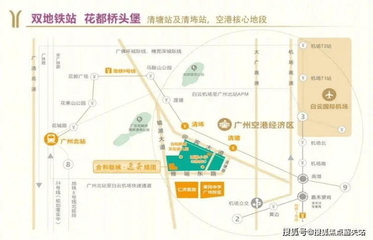 “空铁枢纽”辐射圈:项目距广州北站仅3公里车程,未来可通过地铁、城际快速切换至大湾区各大城市;