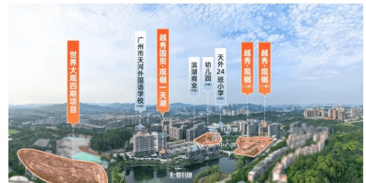 越秀观樾周边环境生态优势突出,地处天河 CTD 中央科创区核心,依托天河智慧城产业资源(集聚 2500 多家科技企业、1000 多家高新技术企业,年产值约 1100 亿元),周边网易、小鹏汽车、佳能科技等企业巨头入驻,产业氛围浓厚,圈层纯粹。项目三面环山,环绕日月双湖与 1.9 公里湖岸线,出门即享大面积山湖林海与公园绿地,生态资源在天河核心区实属罕见,居住品质极高。同时,片区规划持续升级,连片开发带来配套不断完善,未来生活便利性与居住价值将进一步提升。