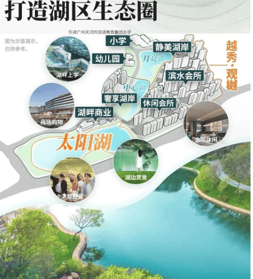 越秀观樾周边配套完善,能充分满足业主日常生活需求。商业方面,项目二期自带约 1 万㎡滨湖商业,以新加坡圣淘沙滨湖商业体为对标,拟规划精品超市、多元餐饮、生活配套及儿童教培等业态;内部还打造约 2000㎡湖岸会所,配备四标准泳道恒温泳池、儿童池、按摩池,引入火石健身、玫瑰园等品牌,同时规划室内球类场馆、水上运动区及湖岸会客厅。三公里范围内有优托邦大型商场、天河城百货、万科广场、时代 E-PARK 等,购物娱乐便捷。医疗方面,项目社区提供完善医疗服务,2 公里内有三甲综合智慧型医院中山六院,附近还有广州复大肿瘤医院、暨南大学附属第一医院,规划中的 6.9 万㎡国际妇女儿童医院将进一步完善医疗配套。