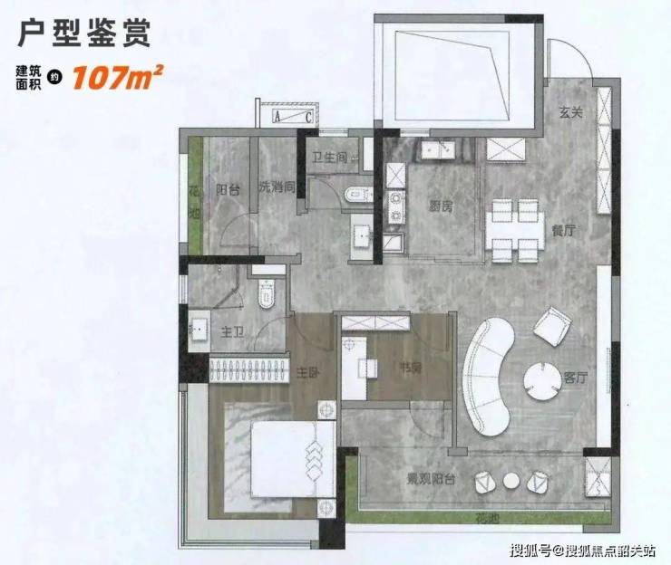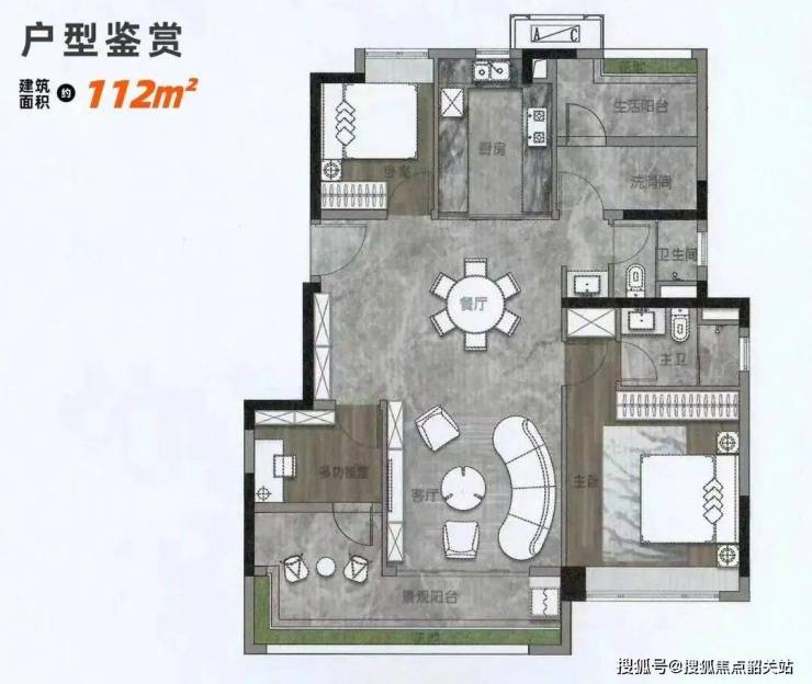 明星户型1:125㎡四房两卫(南北通透,主卧270°转角窗,视野无遮挡);
