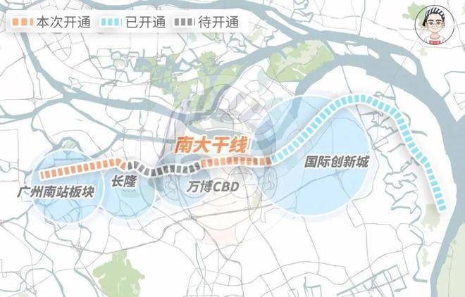 交通系统方面,项目依托多层级立体交通网络。南大干道作为城市南部重要快速交通走廊,规划为双向6-8车道,不设红绿灯快速通行体系,设计时速可达80km/h以上,能够直接连接新化快速路系统,从而实现向广州中心城区的快速通达。以实际通勤逻辑测算,从项目出发,约10分钟可抵达国际创新城片区,约15分钟可进入万博CBD商业圈,约25分钟可到达广州南站综合交通枢纽。