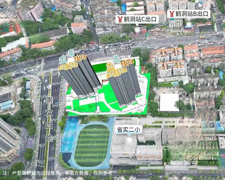 真正的地铁上盖盘:紧邻鹤洞地铁站A口,直线距离不到百米,极大提升了通勤便利性。