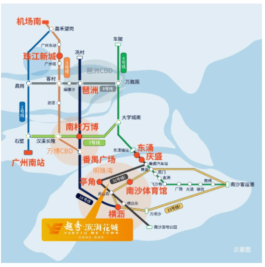 越秀滨海花城地处南沙亭角板块,严格意义上隶属于明珠湾管理局统筹的梅糖及亭角区块,无缝衔接行政中心、商务中心、交通要道三大发展引擎,定位为灵山岛后花园,同时作为南沙北大门、魅力艺创门户,板块发展潜力巨大,既能享受明珠湾板块的发展红利,又能拥有相对宜居的居住环境,是南沙板块中极具性价比的宜居板块。