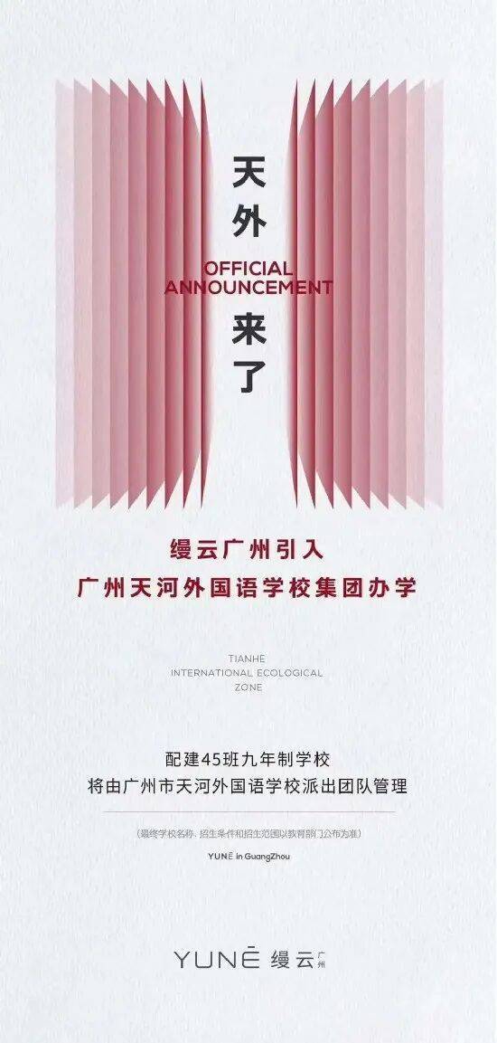 高端人居市场罕见的社区内自带全线12年公立教育配套---幼儿园、18班小学、27班初中,规模不算大,家门口就是学校,足够方便,已经确定引进了天河外国语学校办学,瞬间吊打了天河东的一众项目,并确定2025年9月开学。