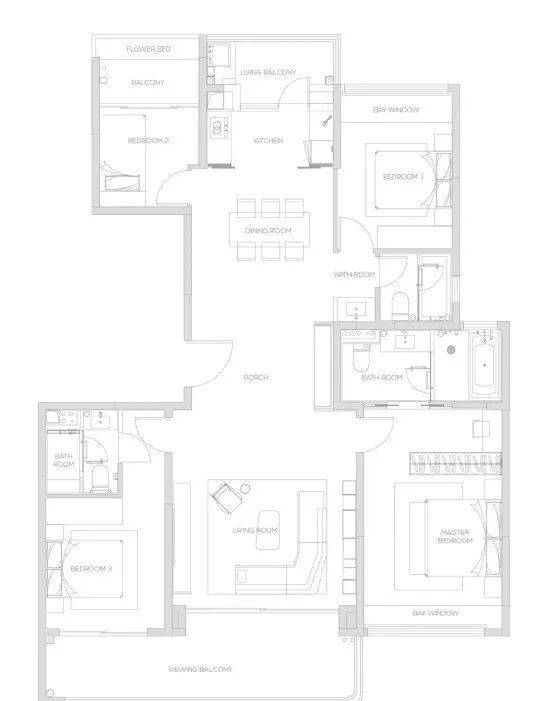 168㎡四叶草户型 四室两厅三卫