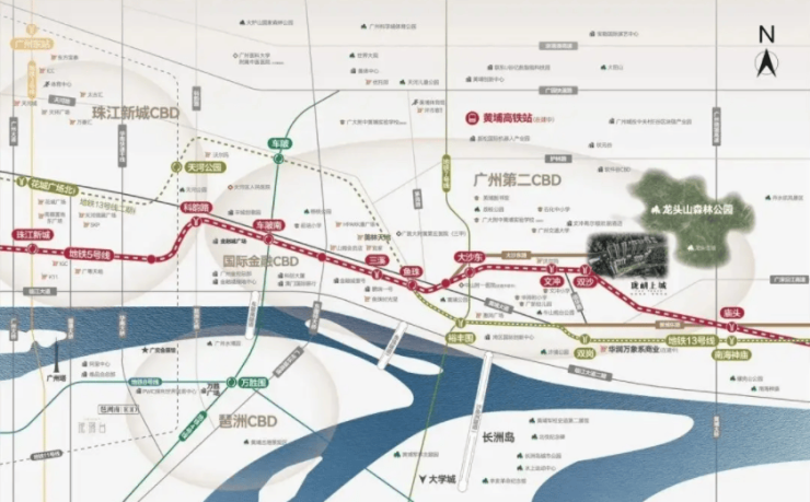 项目的选址,往往决定了未来的价值高度。广州地铁珑岄上城落子于黄埔区核心腹地——双沙站。这里不仅是广州地铁5号线上的黄金站点,更是连接天河金融城、珠江新城与东部科学城的交通枢纽。双沙片区,作为老黄埔焕新的桥头堡,承载着旧改重生与产业升级的双重使命。周边不仅有龙头山森林公园的自然馈赠,更有中海、华润等巨头带来的产业聚集效应。
