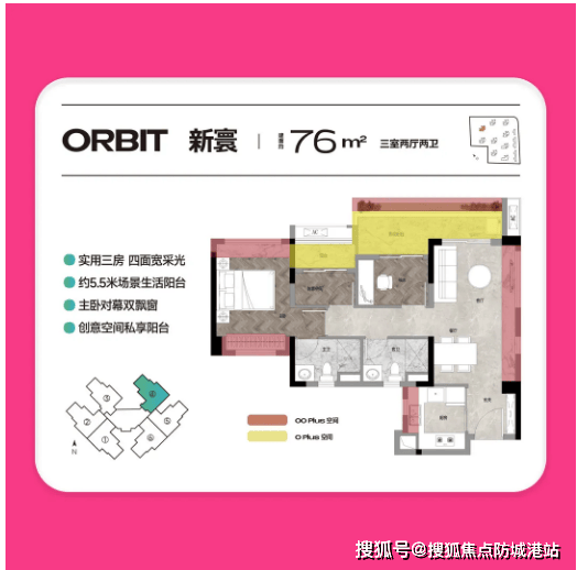 【约76㎡3房2厅真2卫】:该户型与74㎡户型设计相似,在空间尺度上略有提升,同样是刚需群体的优质选择。户型配备约5.5米大阳台,270°无敌视野,可欣赏社区园林美景,阳台空间宽敞,满足业主的多元化需求;三房真两卫设计,兼顾实用性与便捷度,适合三口之家或四口之家居住;四开间采光,全天沐浴阳光,室内明亮通透,采光通风效果极佳;超83%标准层实用率,空间布局合理,无浪费面积,实用性拉满,性价比极高,用刚需的预算,享受舒适的居住空间。