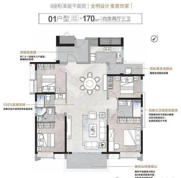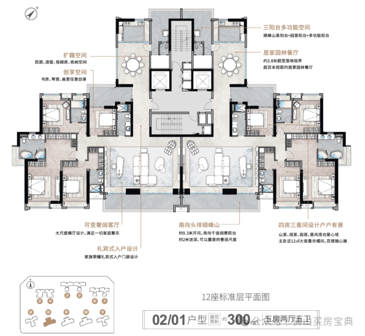 以及建面约 300㎡的 5 室 2 厅 5 卫