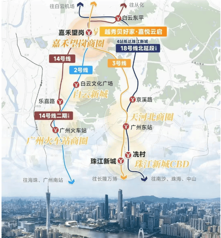 3 号线(北延段):15 分钟直达珠江新城、体育西、天河北等核心 CBD,直通白云国际机场,是贯穿广州南北的产业大动脉。