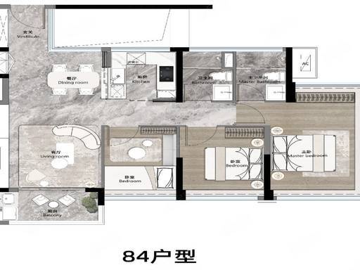 84㎡ 三房两厅两卫(爆款):片区稀缺小户型,四开间朝南,全明通透。主卧 270° 环幕飘窗,采光观景极佳。动静分区明确,实用性强,总价可控,是刚需上车首选。