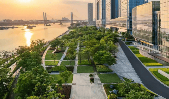 居民可以下楼即享约10万㎡的江畔园林,体验一线无界江景,升阶广阔意境,为时代赢家打造上乘的滨江商务战略级社交空间。