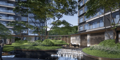在社区内部,中国铁建打造了约1.8万平方米的下沉式双层园林。利用近5米的高差,设计了半天云瀑、风雨连廊、登山庭院等特色景观。这种立体式的园林设计,不仅丰富了空间的层次感,还为业主提供了多样化的休闲活动场所。无论是晨跑、瑜伽,还是亲子互动、邻里交流,都能在这里找到合适的空间。