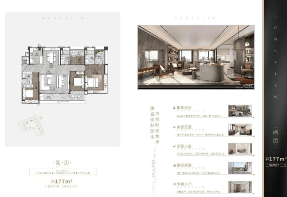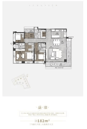 而182平方米的三房两厅三卫户型则更注重社交与隐私的平衡。入门处设有隐藏式储物柜,增加收纳功能,同时可打造私人酒窖;LDK餐客厅一体化设计,搭配岛台与半开放式厨房,促进家庭成员间的互动交流;270°IMAX阳台超16米环绕式景观,将中轴园景尽收眼底;宽奢主卧超30平方米,配备双飘窗与步入式衣帽间,尽显奢华人生。