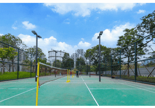 除了核心景观带,社区内还设置了多个功能性活动空间,包括篮球场、乒乓球场、羽毛球场、动感单车区等,满足不同年龄段居民的健身需求。儿童游乐区则以熊猫主题国潮乐园为核心,结合亲子互动设施,打造安全有趣的儿童活动场地。此外,林下书吧、冥想角等特色空间也陆续落成,为居民提供更多元化的休闲选择。
