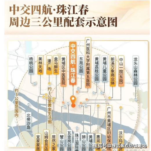 医疗配套:健康是幸福生活的基础,中交四航·珠江春周边医疗资源丰富,紧靠多家优质大型三甲医院,时刻为业主健康护航。具体来看,项目周边有中山一院东院、广州医科大学附属第五医院、广州市黄埔区中医院等多家三甲及优质医院,医疗实力雄厚,科室齐全,医护团队专业,可提供全方位、高品质的医疗服务。