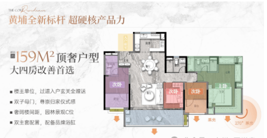 保利华发招商中央公馆采用围合式设计,在售户型涵盖建面约81-159㎡3-4房,满足刚需、改善等不同置业需求,且作为黄埔首个使用率超100%的项目,空间利用率优势显著,无论是自住还是长期持有,都具备较强的竞争力。
