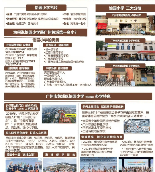 【小学教育】项目已官宣对口黄埔区第一梯队名校——怡园小学,这所建于1989年的老牌名校,于1994年被评为广东省首批省一级小学,办学历史悠久、师资力量雄厚,早于东风东小学、华阳小学等知名院校,教学质量备受认可。