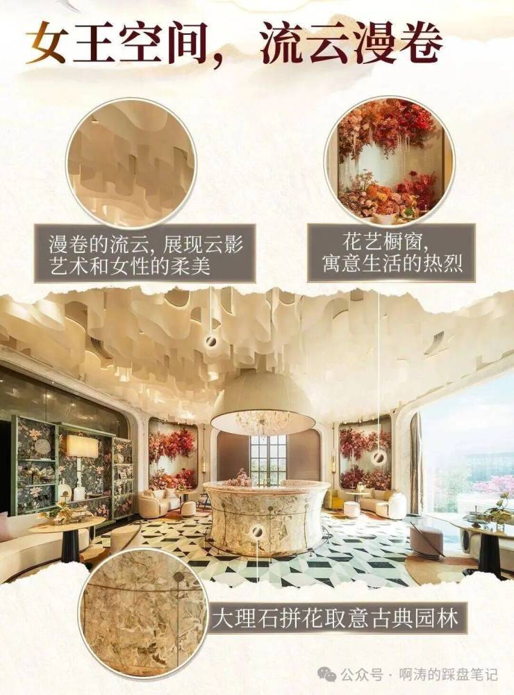 女王空间:专属女性空间,漫卷流云搭配花艺橱窗,浪漫雅致;可在此喝下午茶、阅读、手工调香、与闺蜜畅聊,享受专属的精致时光。