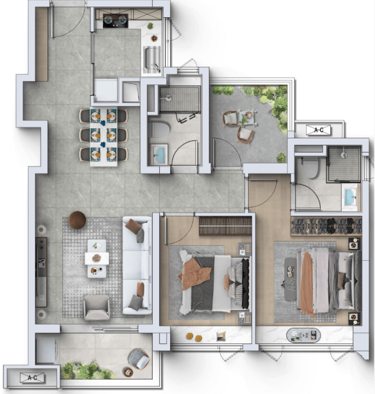 双套房设计:改善尺度,每位家庭成员都有自己的私密天地。