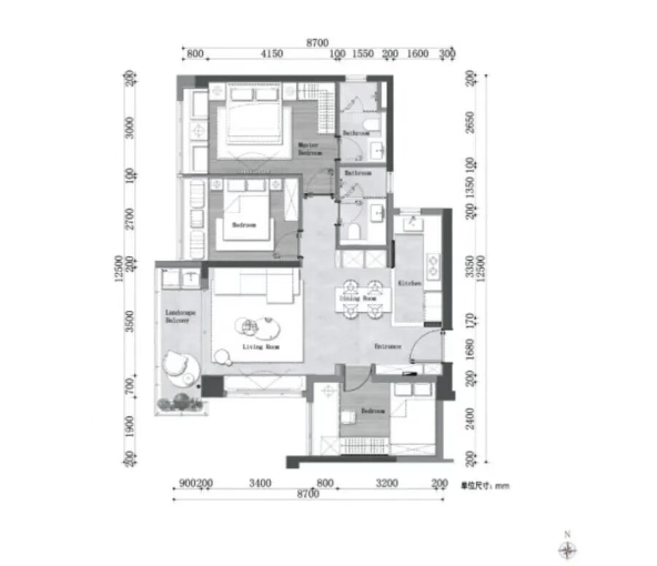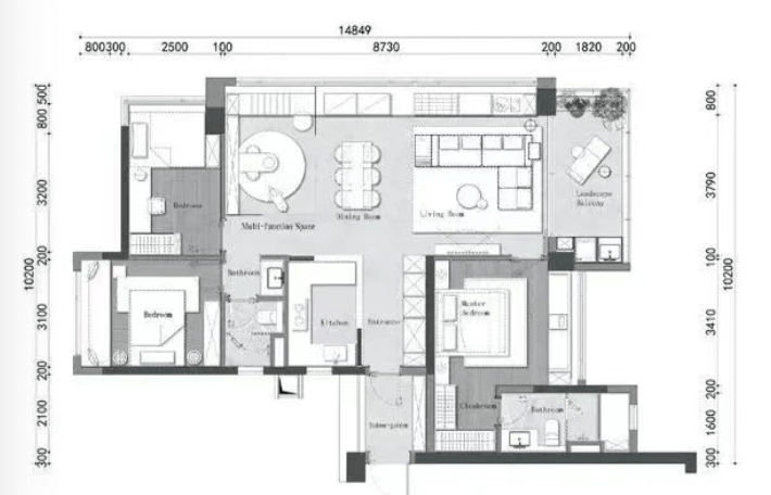 → 奢阔尺度,独立家政间+双主卧套房;