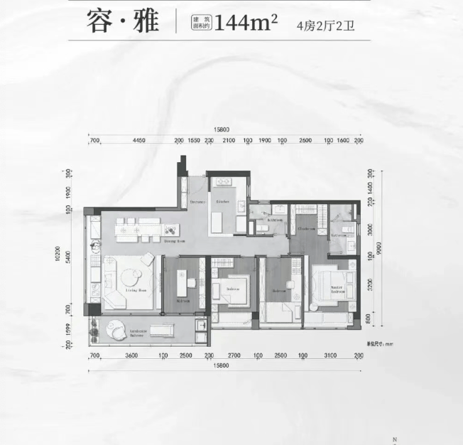 肆:107–180㎡精装四房 | LDK一体+双主套+铝板外立面
