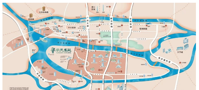 南天名苑位于广州市番禺区洛溪岛的岛尖,紧邻珠江后航道,三江汇聚,形成了独特的自然景观。项目地处广州中轴线南端,不仅拥有不可复制的自然资源,还享有便捷的城市交通网络。作为霍英东集团在广州倾力打造的高端住宅项目,南天名苑集地段、交通、规划利好、环境和配套于一体,堪称城市中的“桃花源”。