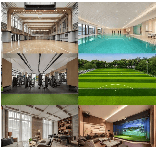 社区内部配备了丰富的休闲娱乐设施,如半岛体育公园、马术场、足球场、网球场等,满足不同年龄段居民的需求。同时,【天CLUB】作为会员制的自然健康生活平台,提供了包括图书馆、健身房、游泳池等多种功能空间,让居民在享受都市繁华的同时也能体验到宁静的生活氛围。