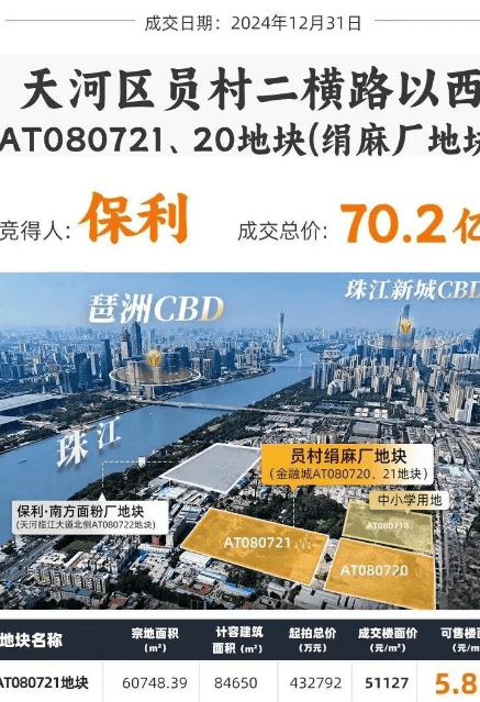 回顾2024年底,保利以雷霆之势,斥资70.2亿元底价拿下了绢麻厂地块。这一动作不仅彰显了央企保利在广州市场的坚定信心,更预示着这片区域将迎来翻天覆地的变化。地块分为AT080720(北)和AT080721(南)两个部分,楼面价分别达到5.07万/㎡和5.11万/㎡。这样的地价水平,直接奠定了项目的高端基因。作为广州单价地王排行榜的第十名,保利天曜自诞生之日起,就站在了金字塔尖。