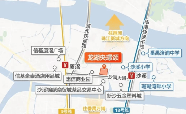 优越的地理位置:紧邻地铁18号线沙溪站和3号线厦滘站,通勤便利,20分钟可达珠江新城。