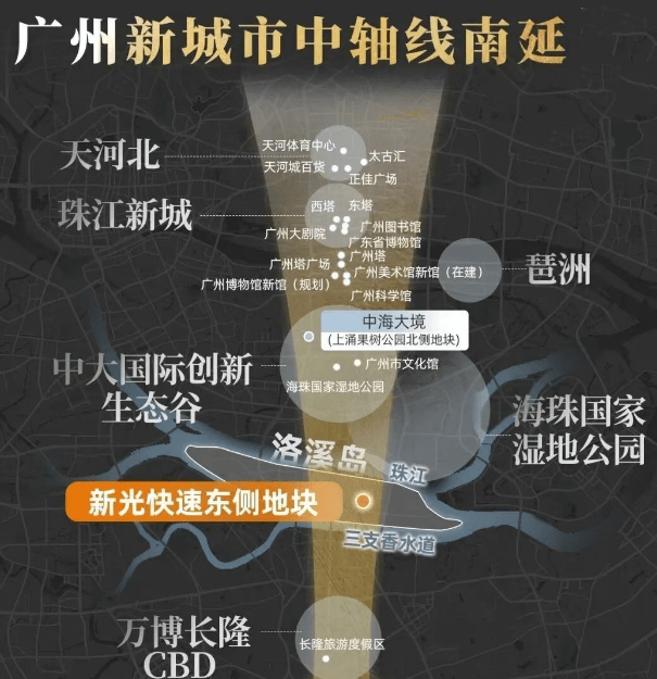 项目位于广州城市新中轴线南延段,地处洛溪岛,拥有双面临江的优越自然景观。