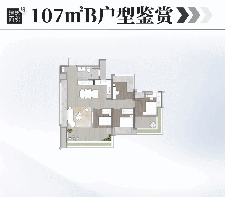 特点:四开间朝南,3+1房布局,主卧环幕飘台设计;南向江景阳台长度约6.8米,带来极致观江体验。