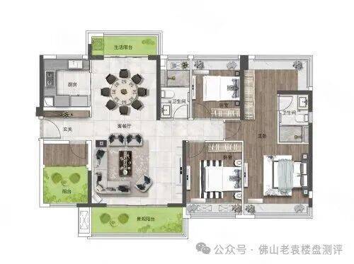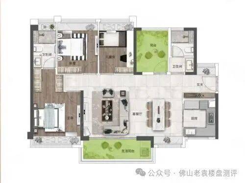 适合人群:改善型家庭、二胎家庭、与老人同住的家庭,空间宽敞、功能齐全,兼顾私密性与实用性