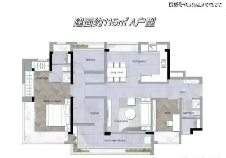 115平B户型有做样板房,也是楼盘的主力户型,货量最多。空间感很强,不说的话完全看不出这个户型面积只有115方。